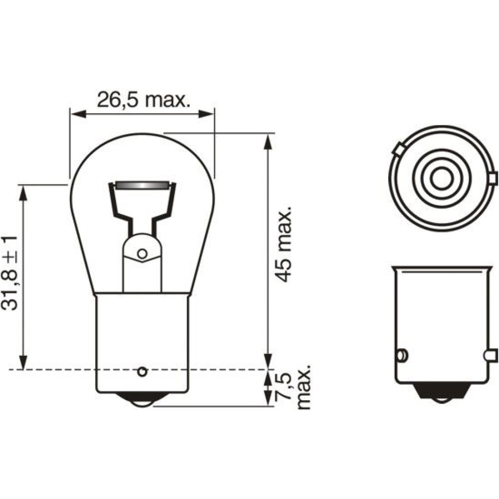 | Sockelausführung Glühlampe | BAU15s |