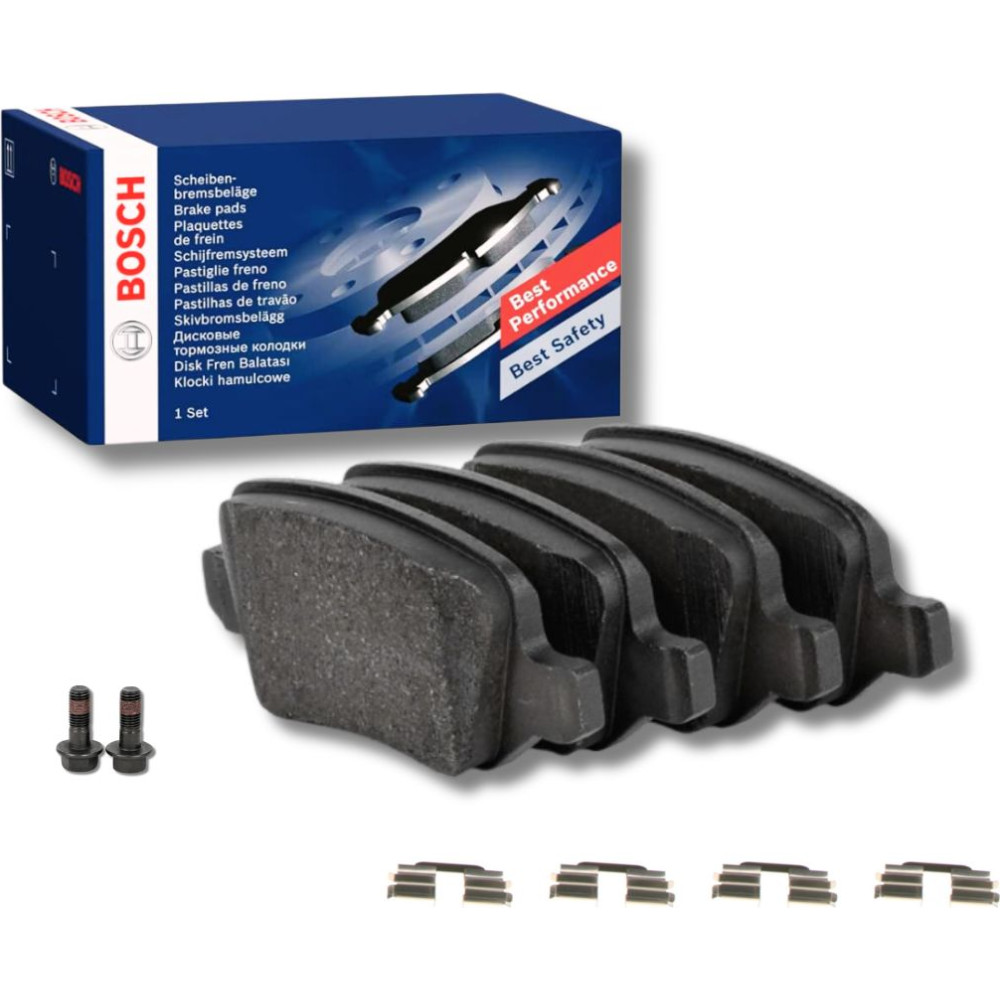 BOSCH 0 986 494 023 Bremsbeläge passend für MERCEDES-BENZ A-Klasse, B-Klasse Low-Metallic, mit Montageanleitung, mit Anti-Quietsch-Blech, mit Schrauben
