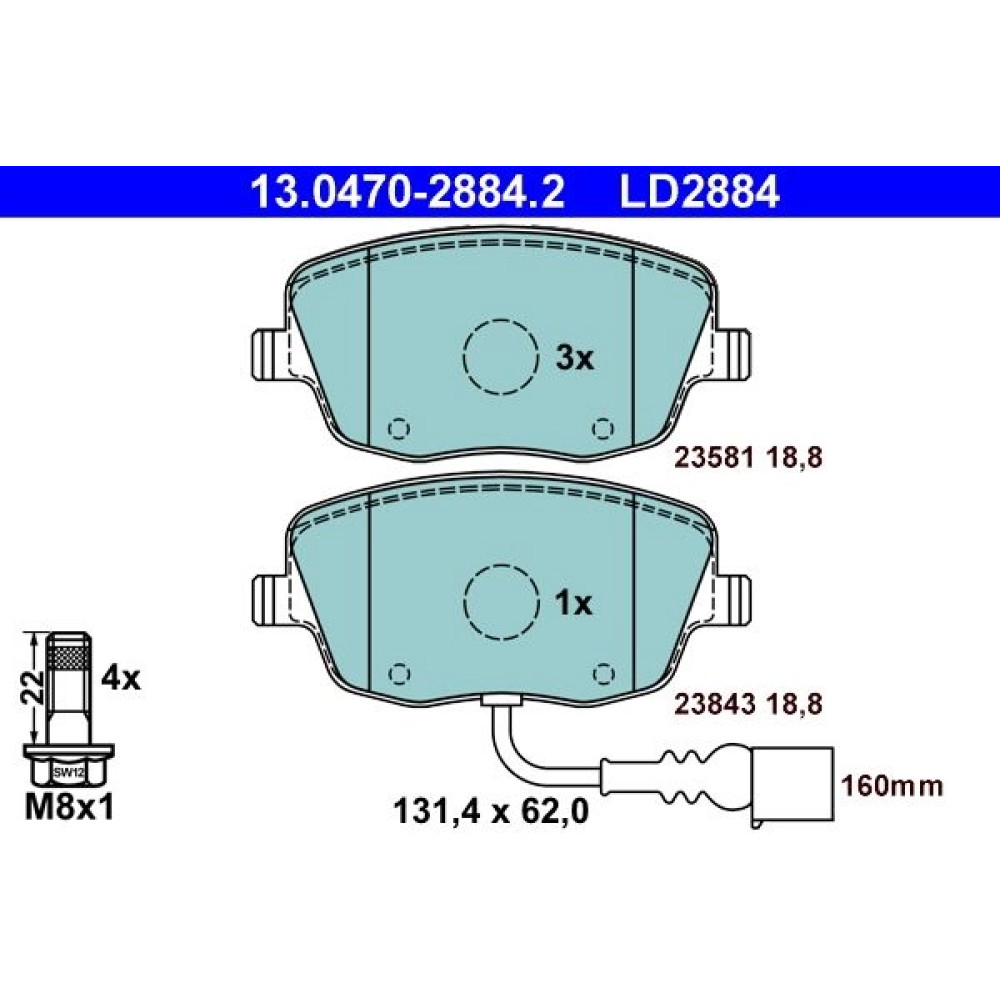 13.0470-2884.2 Bremsbelagsatz, Scheibenbremse ATE Ceramic