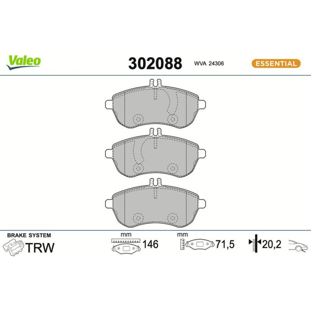 302088 Bremsbelagsatz, Scheibenbremse ESSENTIAL