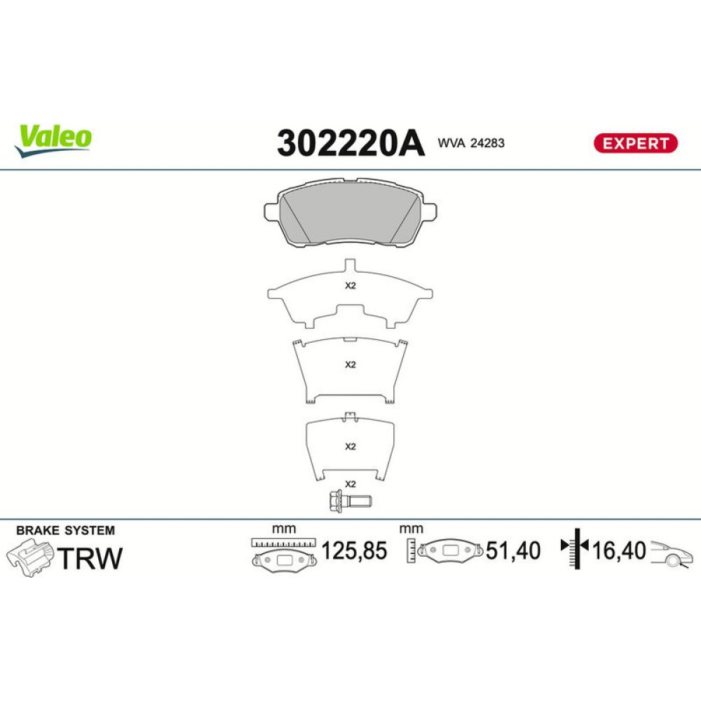 302220A Bremsbelagsatz, Scheibenbremse EXPERT