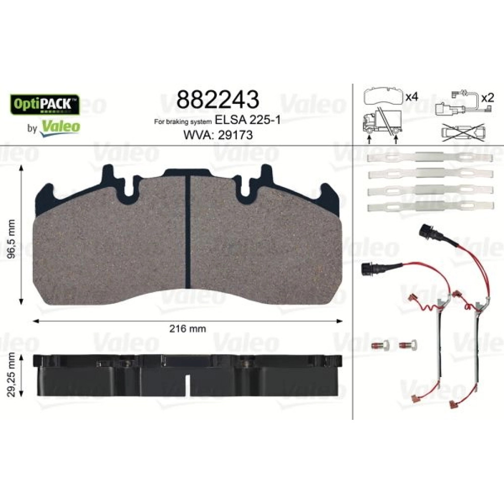 Inhalt des Valeo Bremsbelagsatz, Scheibenbremse 882243