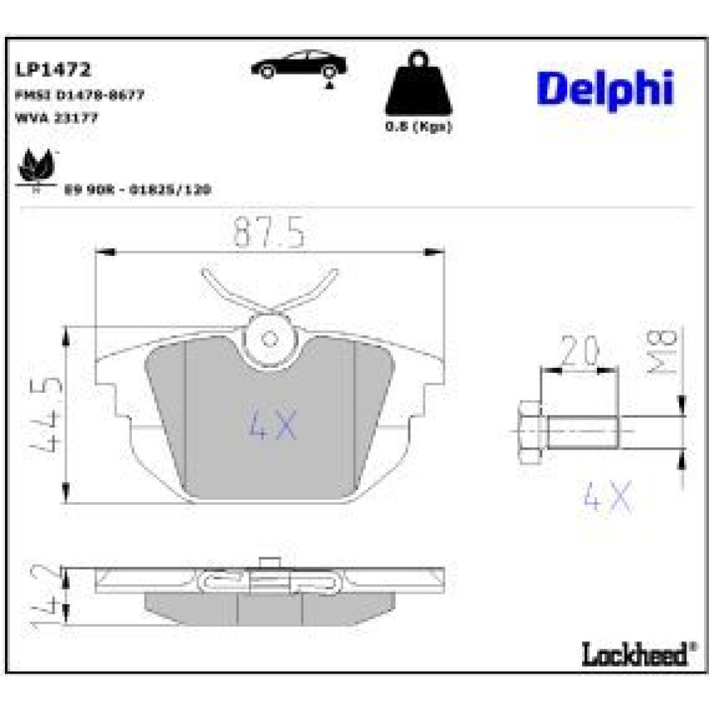 Delphi Bremsbelagsatz, Scheibenbremse LP1472