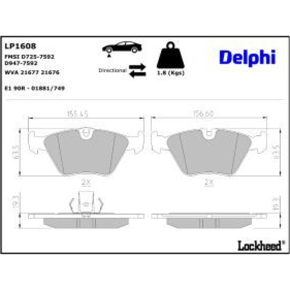 Delphi Bremsbelagsatz, Scheibenbremse LP1608