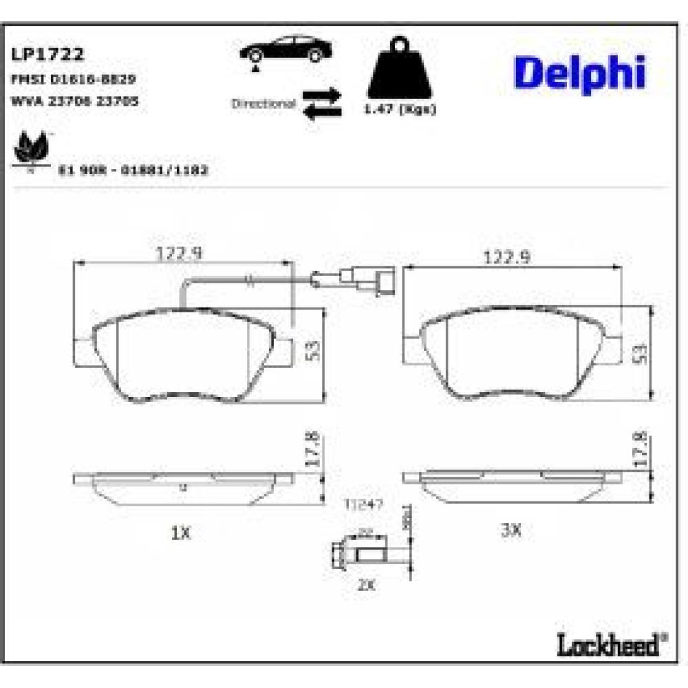Delphi Bremsbelagsatz, Scheibenbremse LP1722