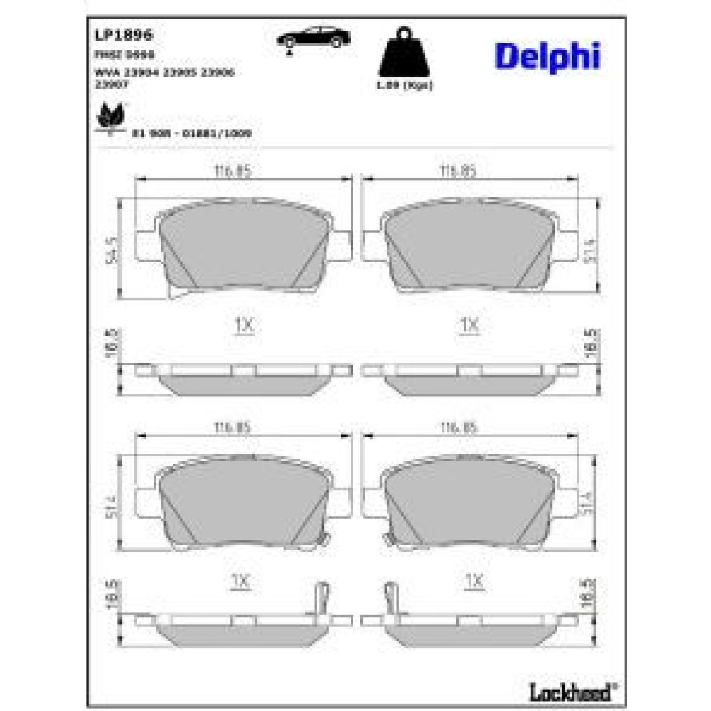 Delphi Bremsbelagsatz, Scheibenbremse LP1896