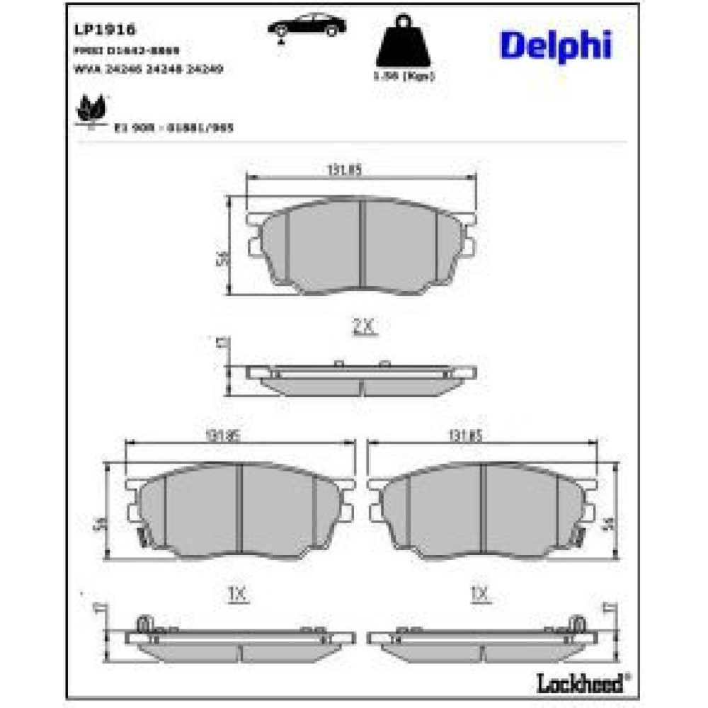 Delphi Bremsbelagsatz, Scheibenbremse LP1916