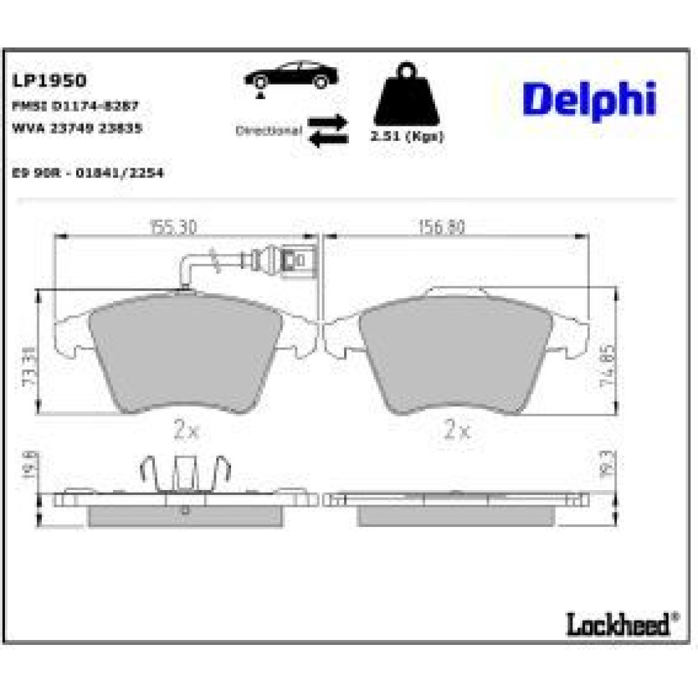 Delphi Bremsbelagsatz, Scheibenbremse LP1950
