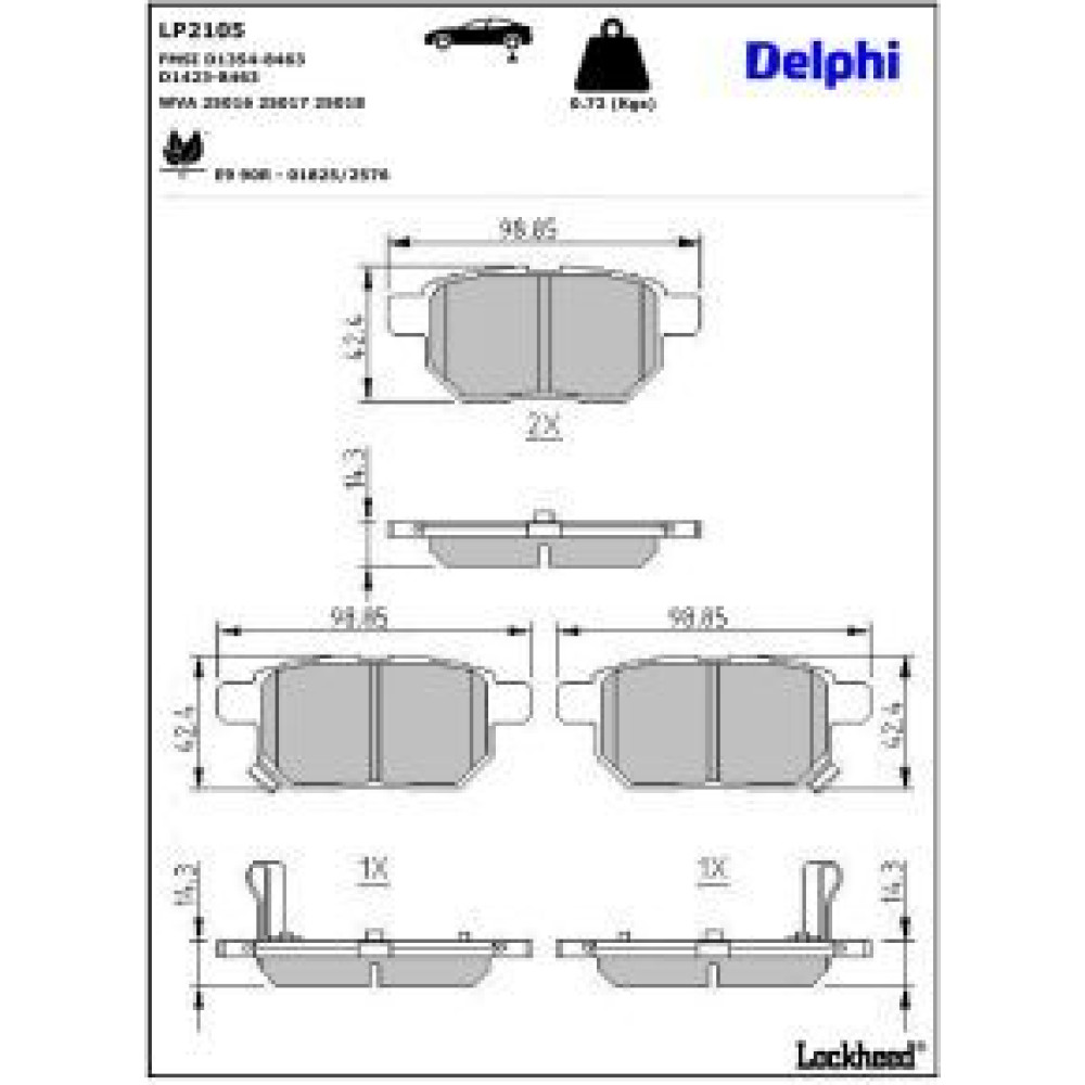 Delphi Bremsbelagsatz, Scheibenbremse LP2105