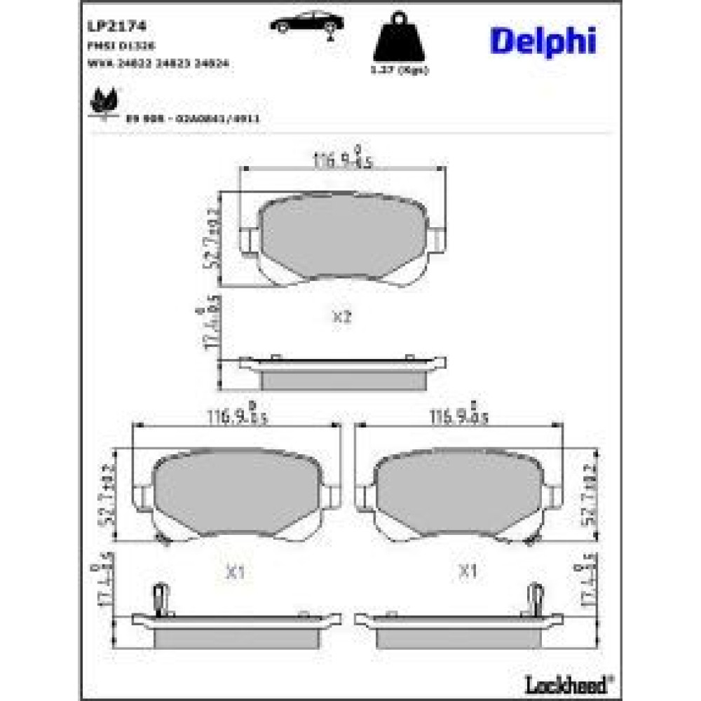 Delphi Bremsbelagsatz, Scheibenbremse LP2174