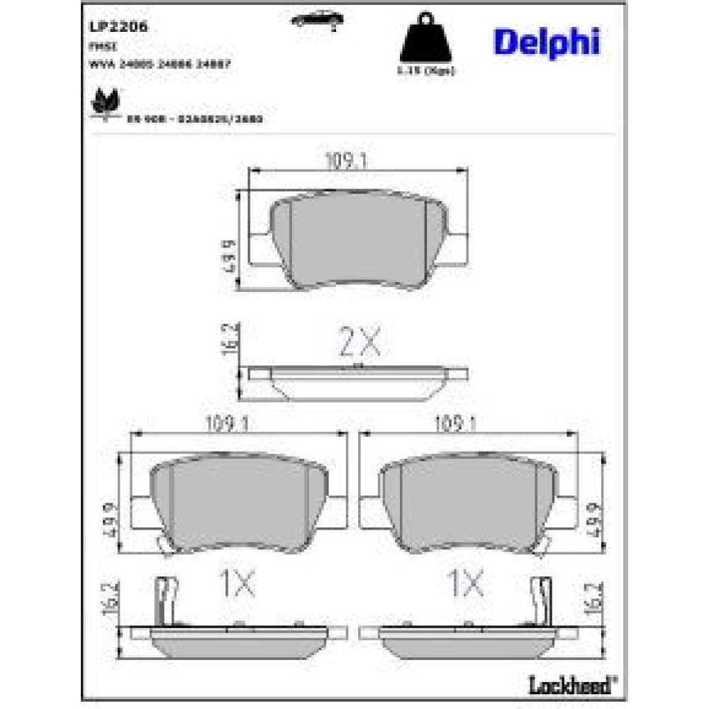 Delphi Bremsbelagsatz, Scheibenbremse LP2206