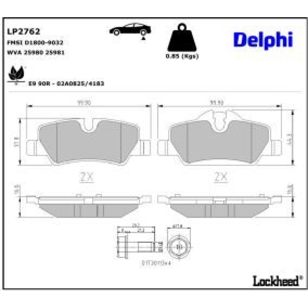 Delphi Bremsbelagsatz, Scheibenbremse LP2762
