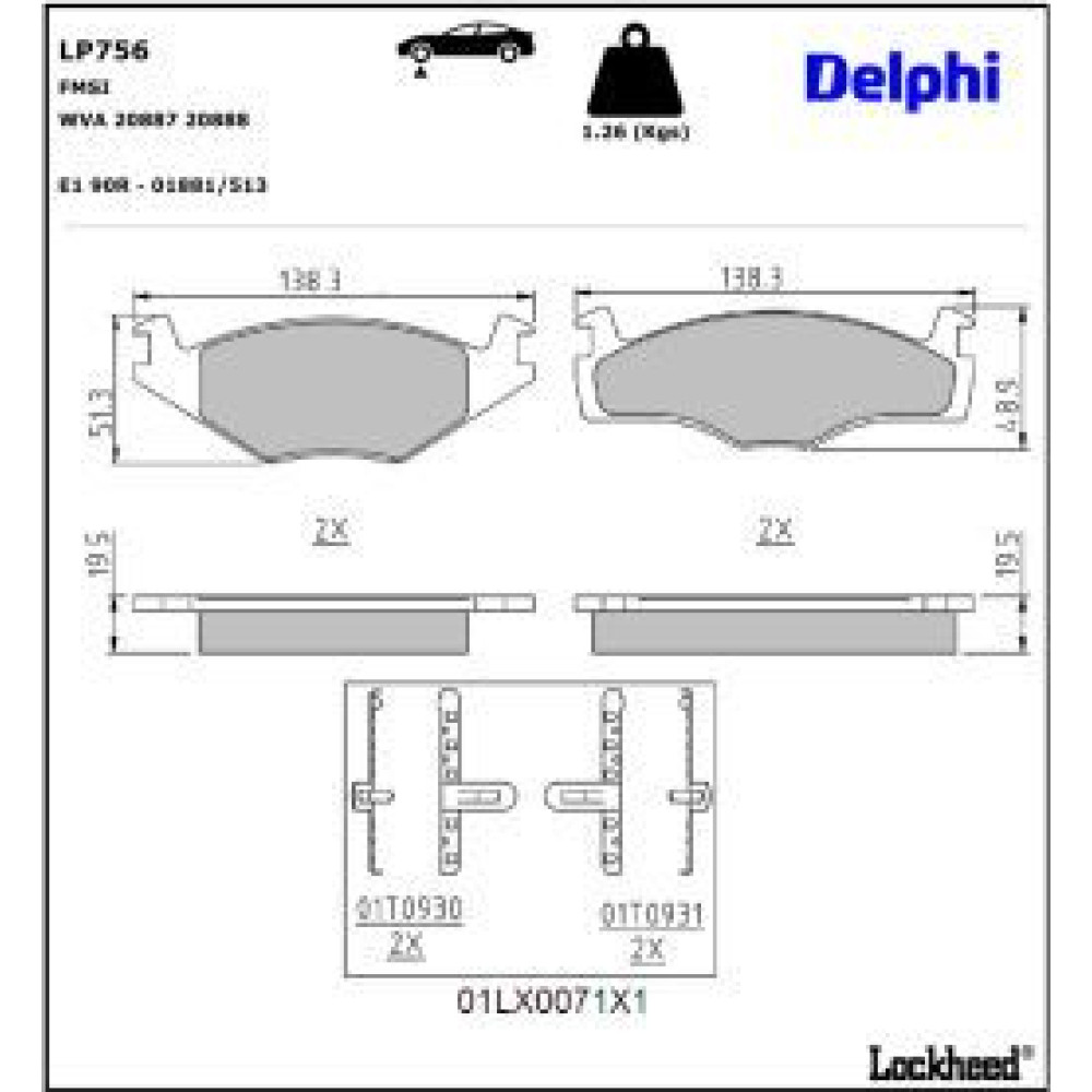 Delphi Bremsbelagsatz, Scheibenbremse LP756