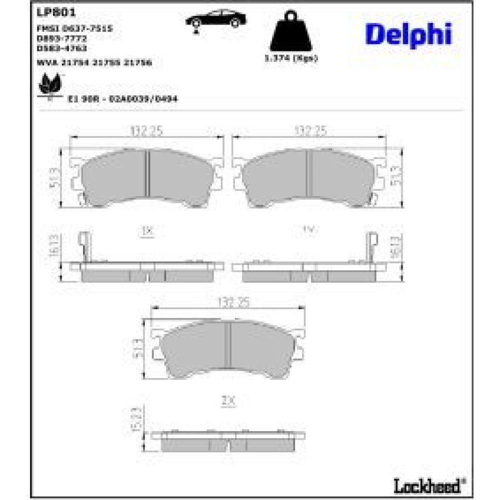 Delphi Bremsbelagsatz, Scheibenbremse LP801