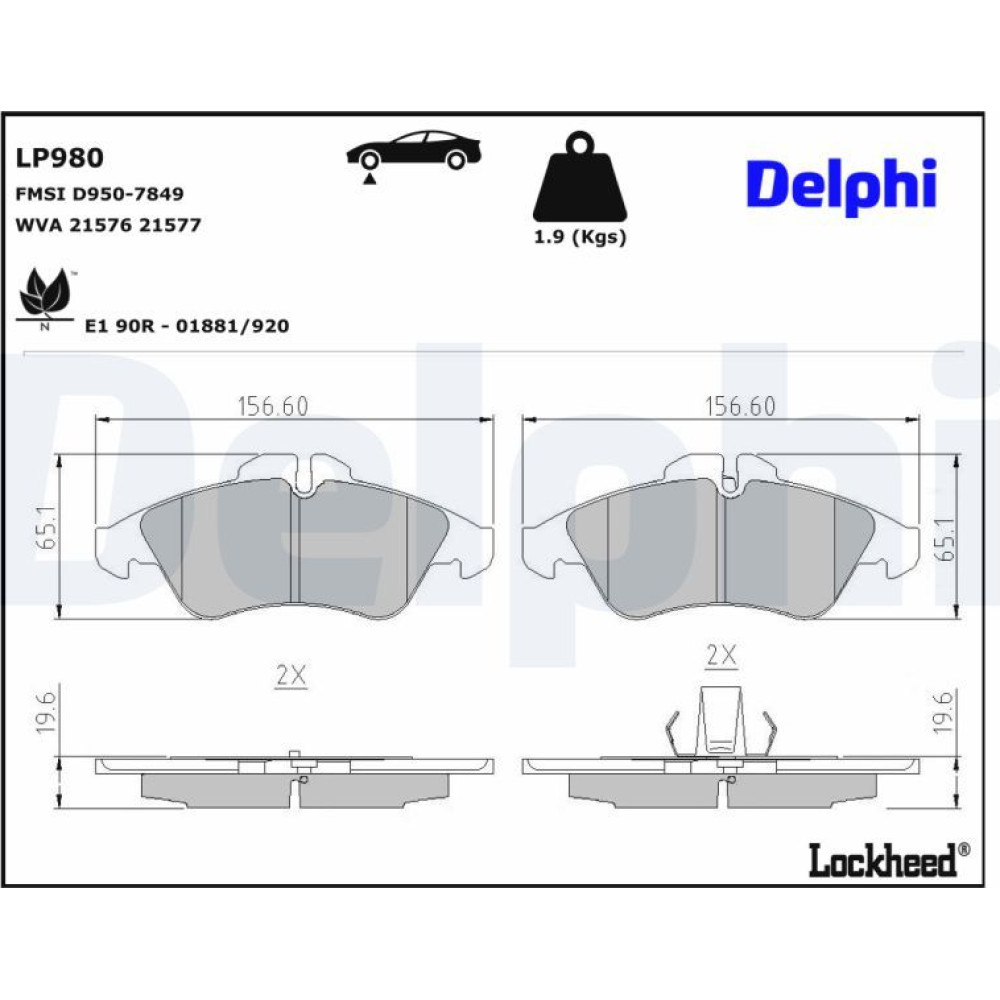 Delphi | Bremsbelagsatz, Scheibenbremse | LP980