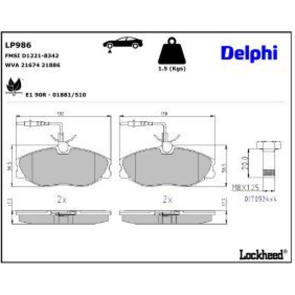 Delphi Bremsbelagsatz, Scheibenbremse LP986