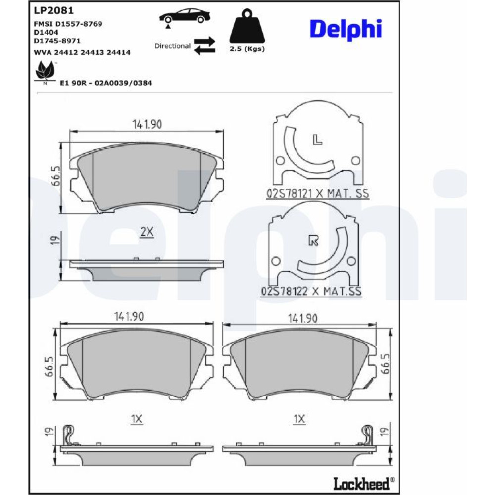 LP2081 Bremsbelagsatz, Scheibenbremse