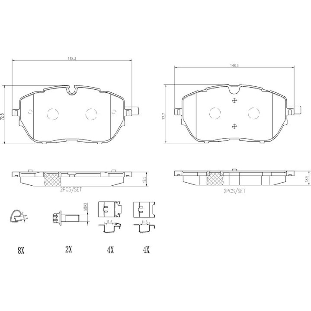 | Zusatzinformation | mit Zubehör mit Anti-Quietsch-Blech mit Bremssattelschrauben |