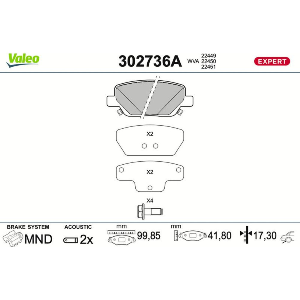 Valeo | Bremsbelagsatz, Scheibenbremse | 302736A