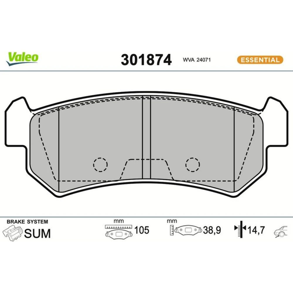 Valeo Bremsbelagsatz, Scheibenbremse ESSENTIAL 301874