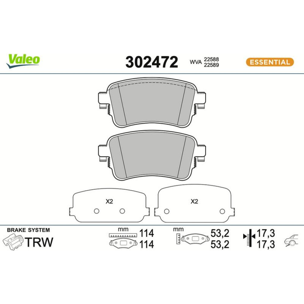 Valeo Bremsbelagsatz, Scheibenbremse ESSENTIAL 302472