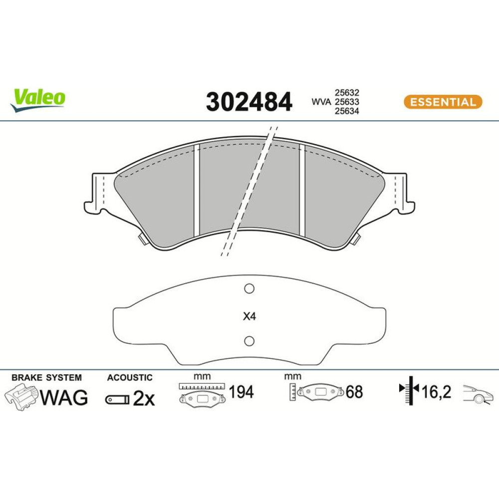 Valeo Bremsbelagsatz, Scheibenbremse ESSENTIAL 302484