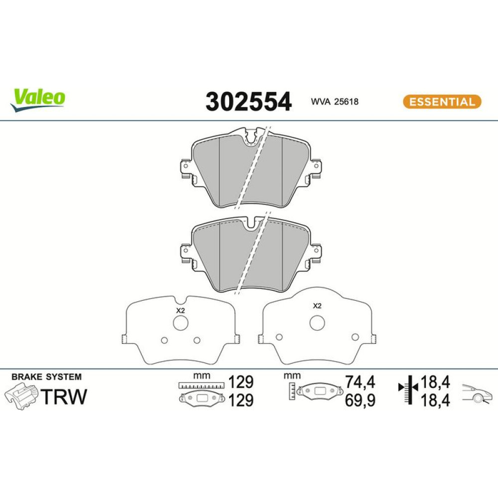 Valeo Bremsbelagsatz, Scheibenbremse ESSENTIAL 302554