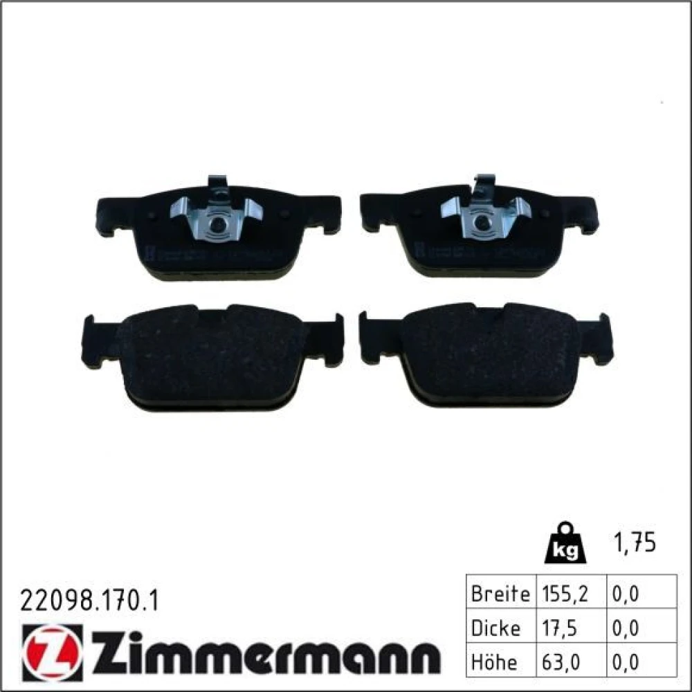 Zimmermann Bremsbelagsatz, Scheibenbremse 22098.170.1