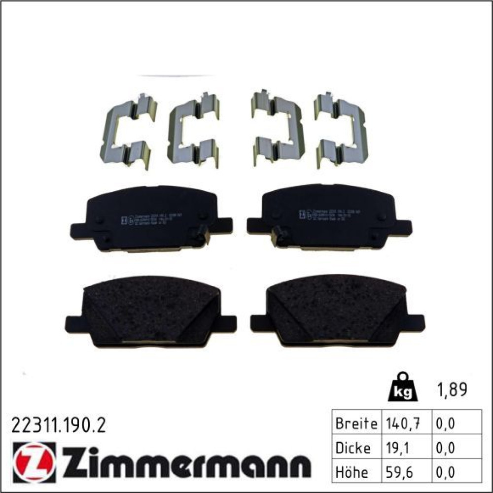 Zimmermann Bremsbelagsatz, Scheibenbremse 22311.190.2
