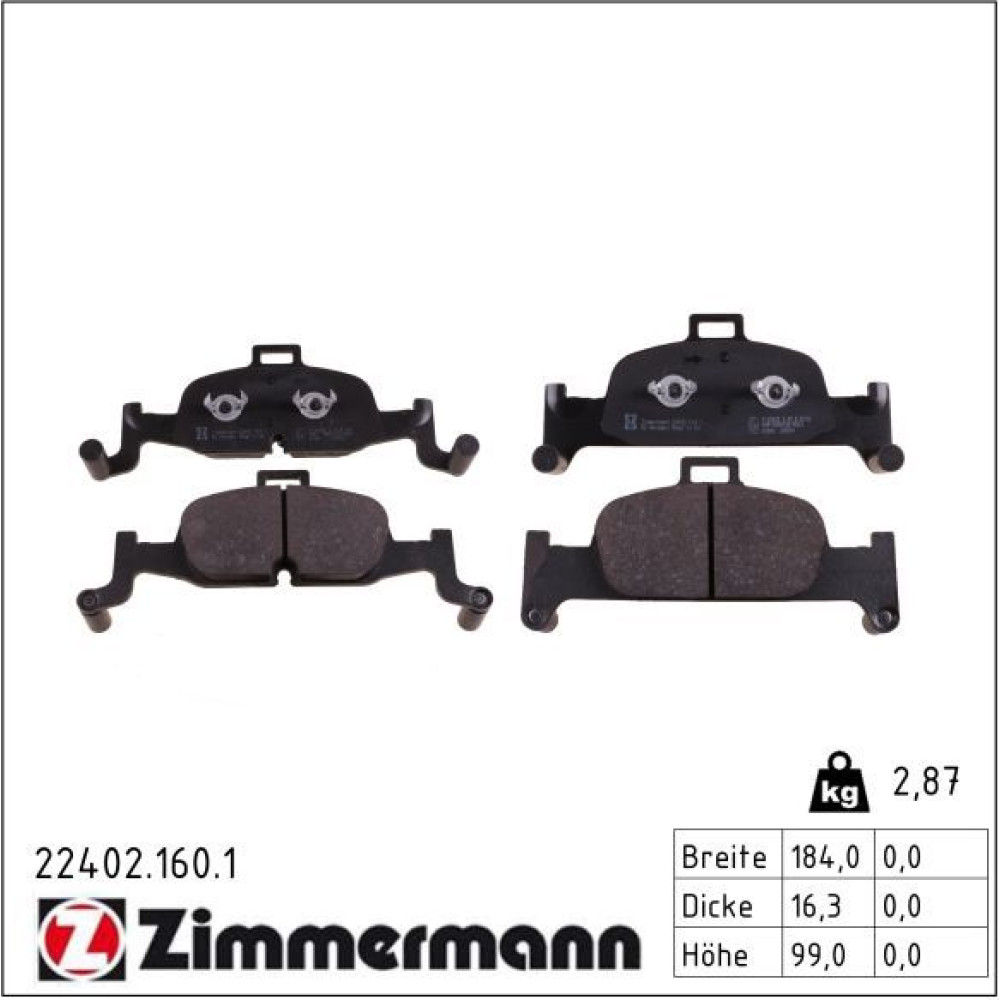 Zimmermann Bremsbelagsatz, Scheibenbremse 22402.160.1
