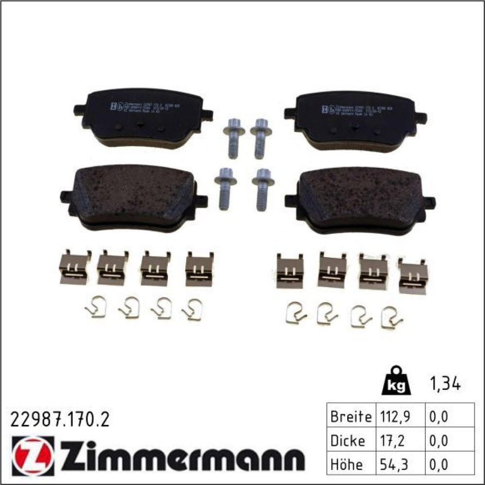 Zimmermann Bremsbelagsatz, Scheibenbremse 22987.170.2