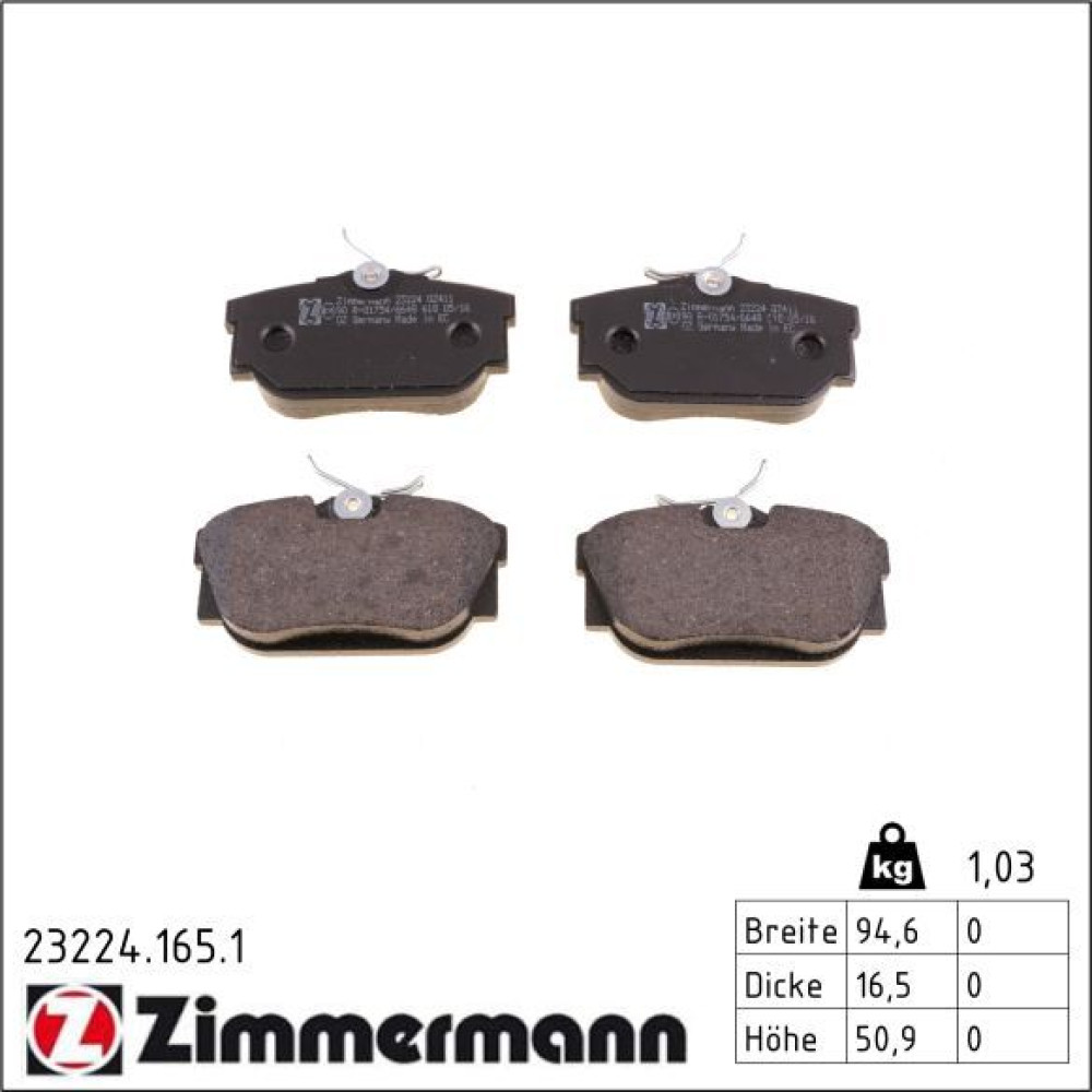 Zimmermann Bremsbelagsatz, Scheibenbremse 23224.165.1