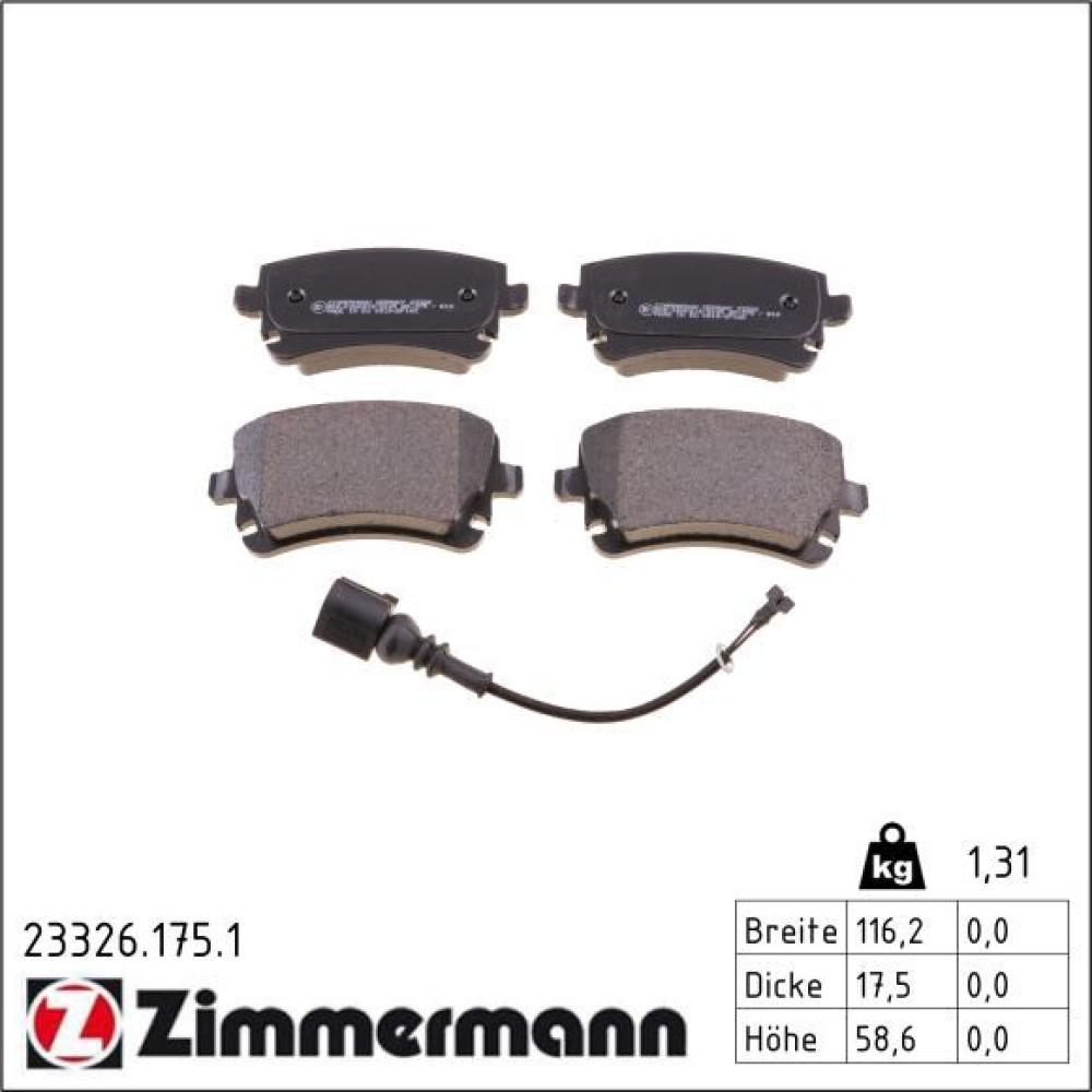 Zimmermann Bremsbelagsatz, Scheibenbremse 23326.175.1