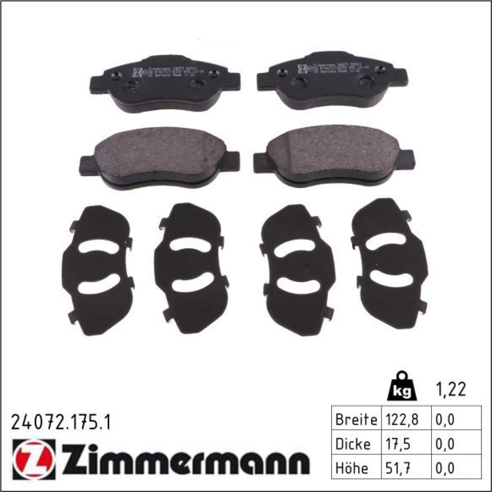 Zimmermann Bremsbelagsatz, Scheibenbremse 24072.175.1