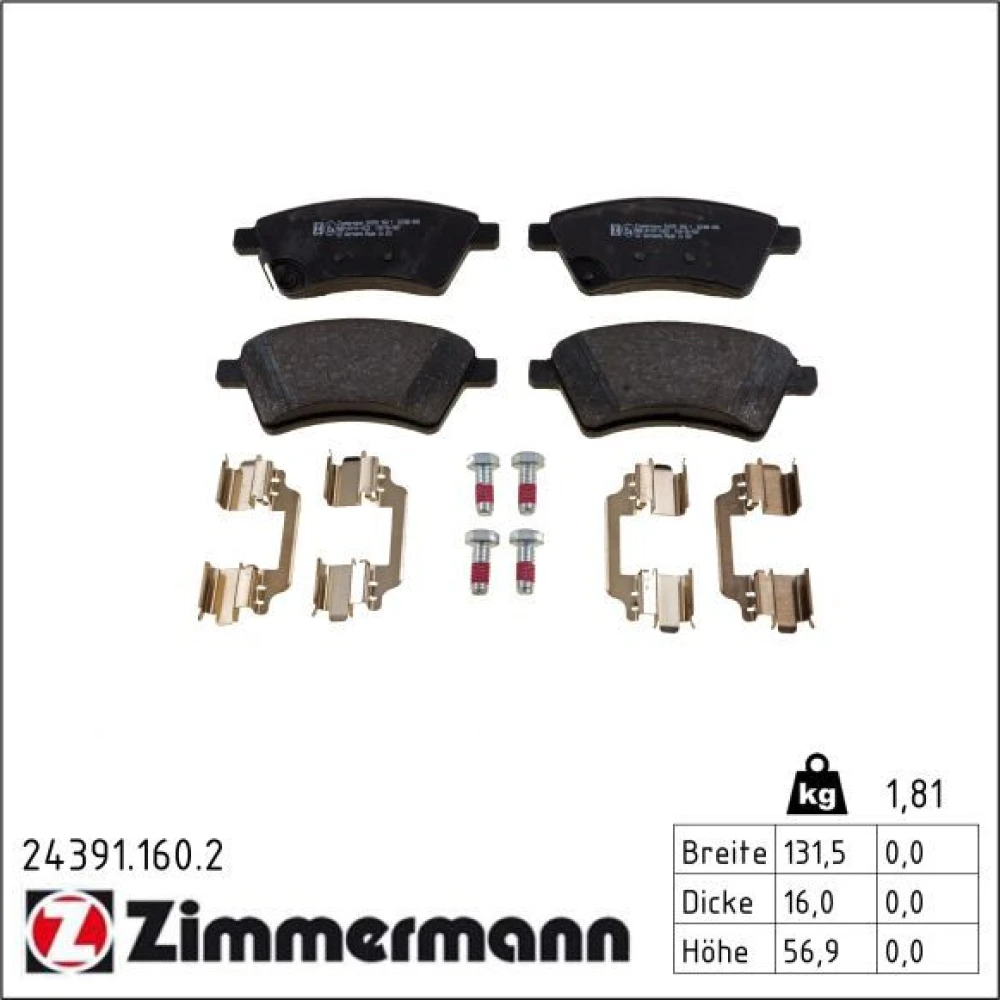 Zimmermann Bremsbelagsatz, Scheibenbremse 24391.160.2