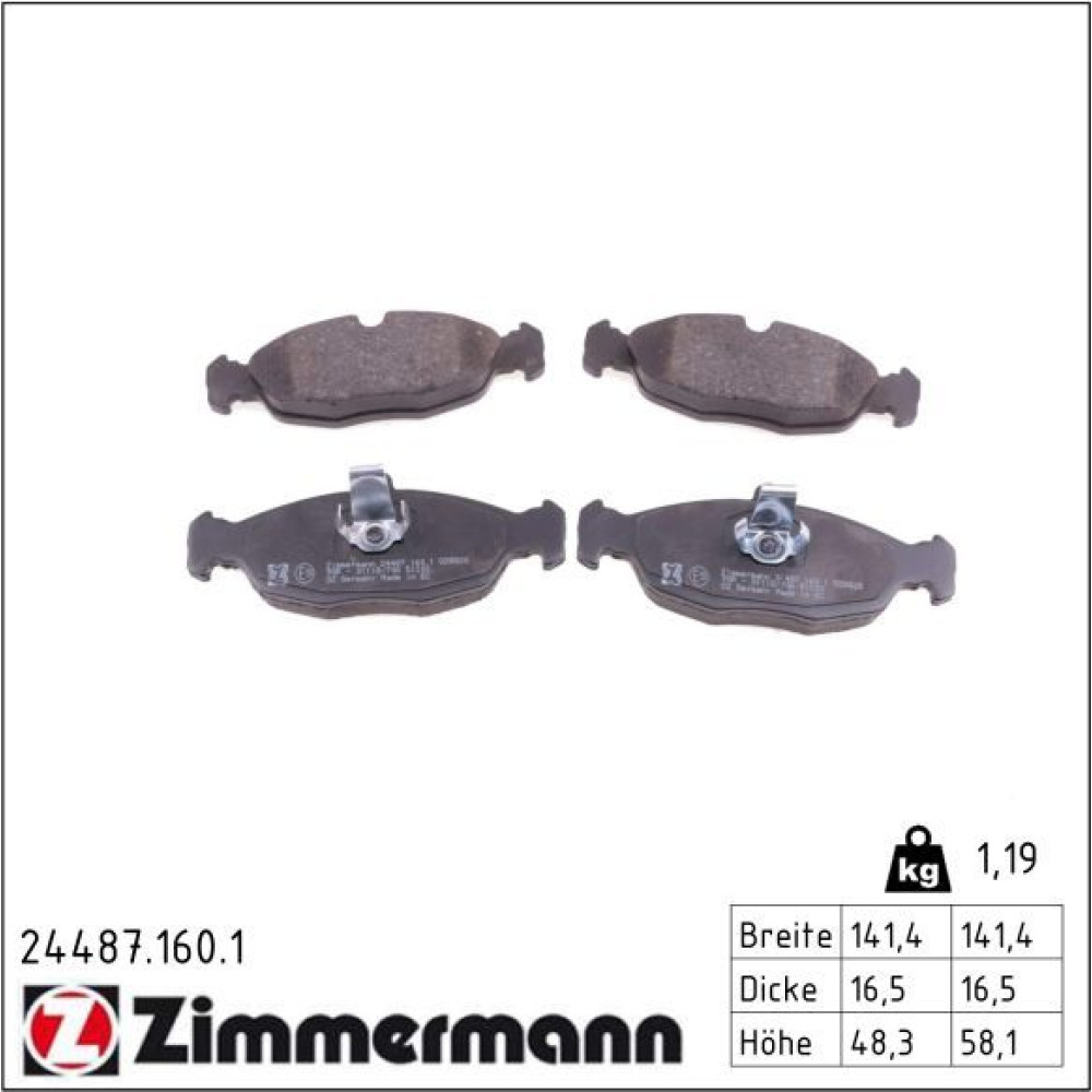 Zimmermann Bremsbelagsatz, Scheibenbremse 24487.160.1