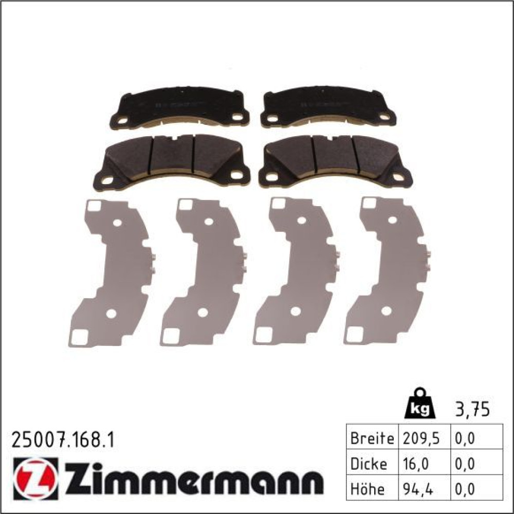 Zimmermann Bremsbelagsatz, Scheibenbremse 25007.168.1