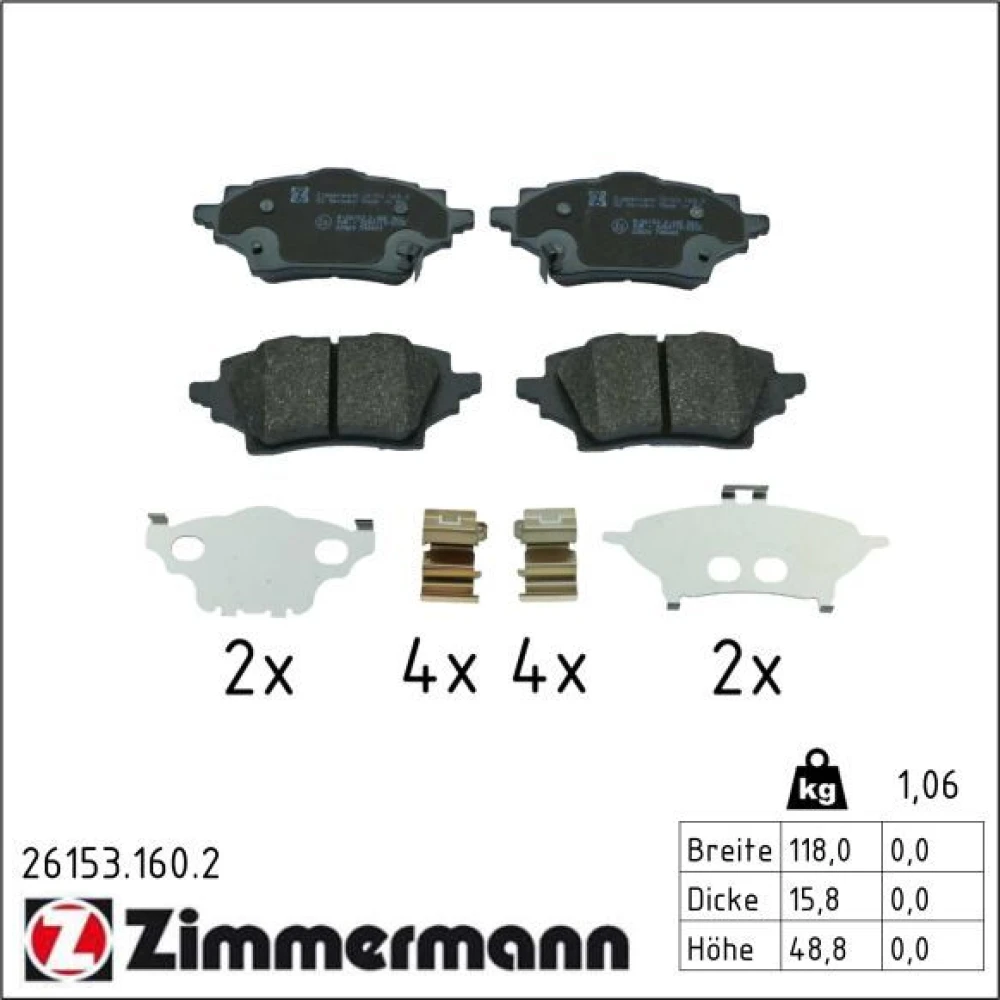Zimmermann Bremsbelagsatz, Scheibenbremse 26153.160.2