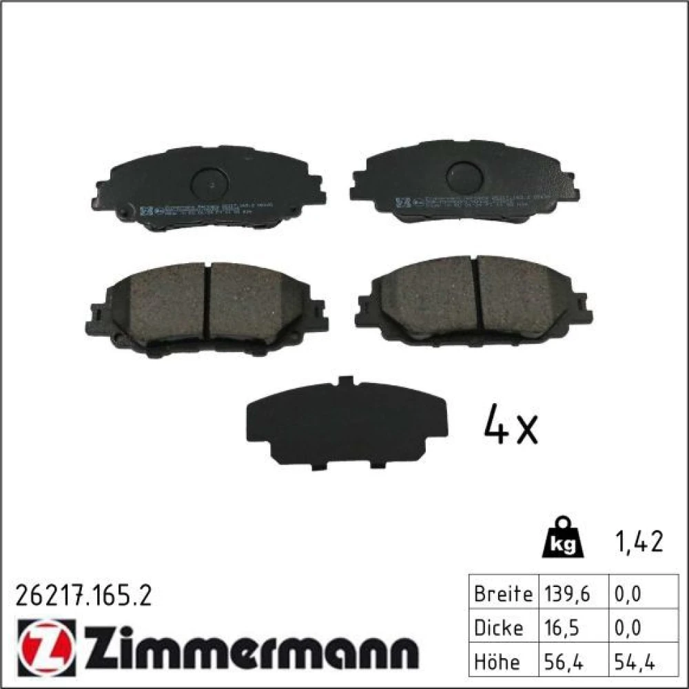 Zimmermann Bremsbelagsatz, Scheibenbremse 26217.165.2