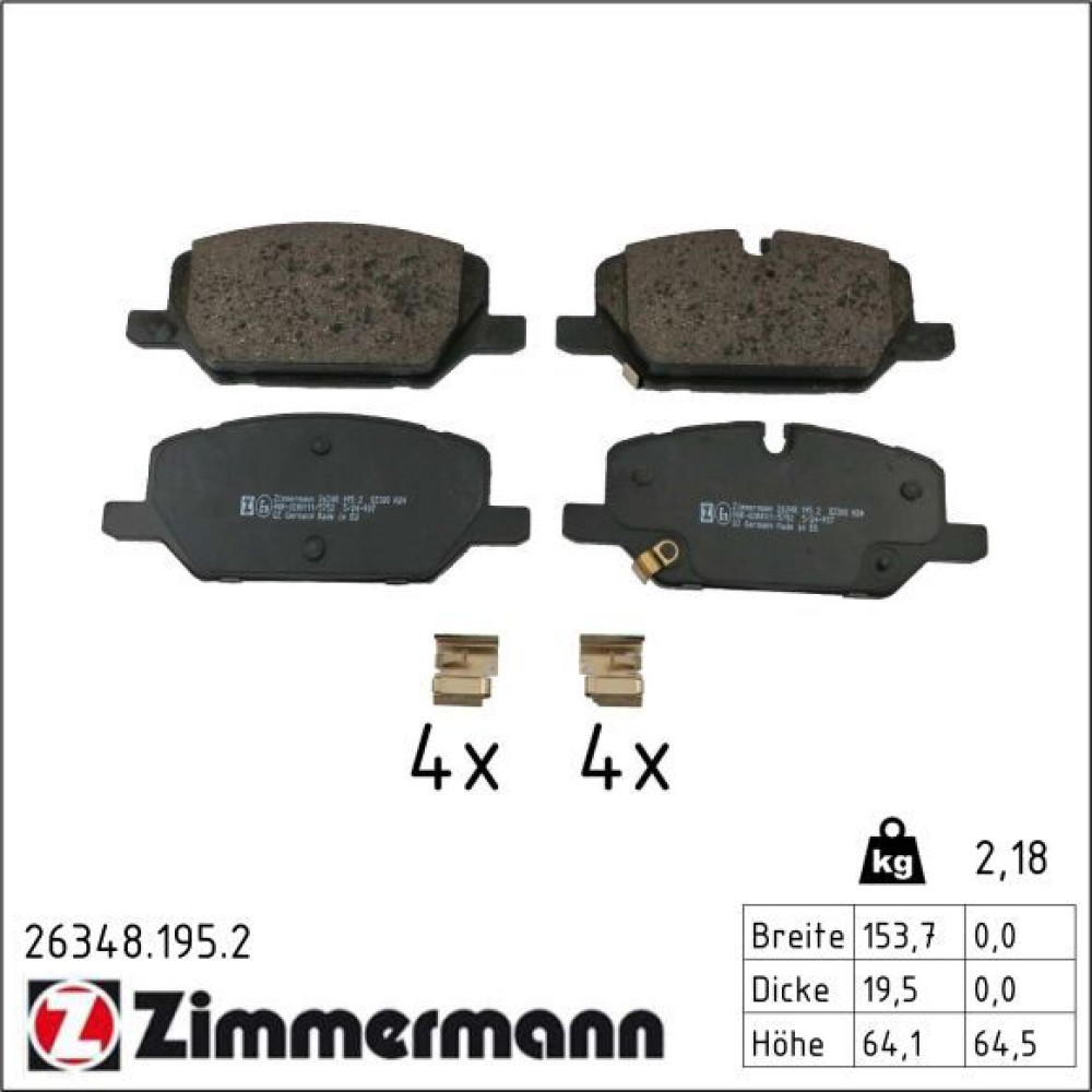 Zimmermann Bremsbelagsatz, Scheibenbremse 26348.195.2