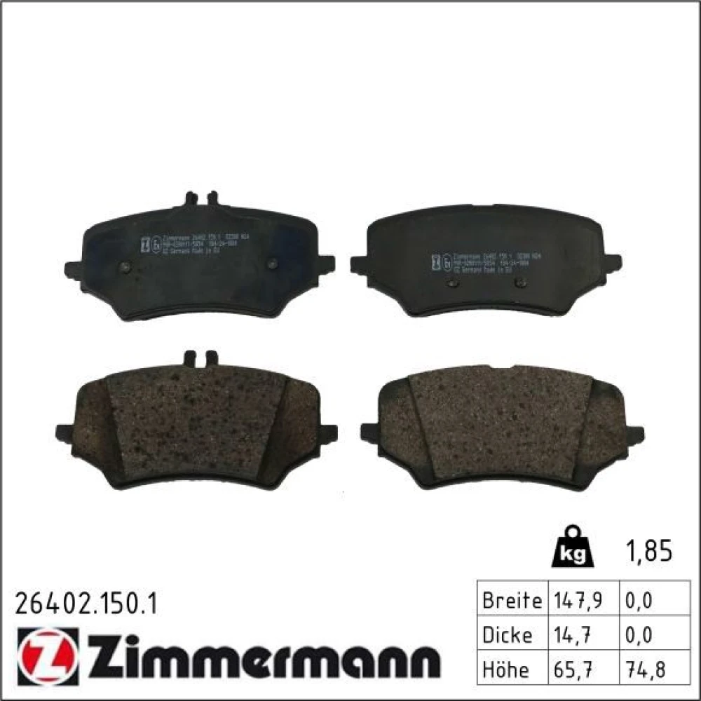 Zimmermann Bremsbelagsatz, Scheibenbremse 26402.150.1