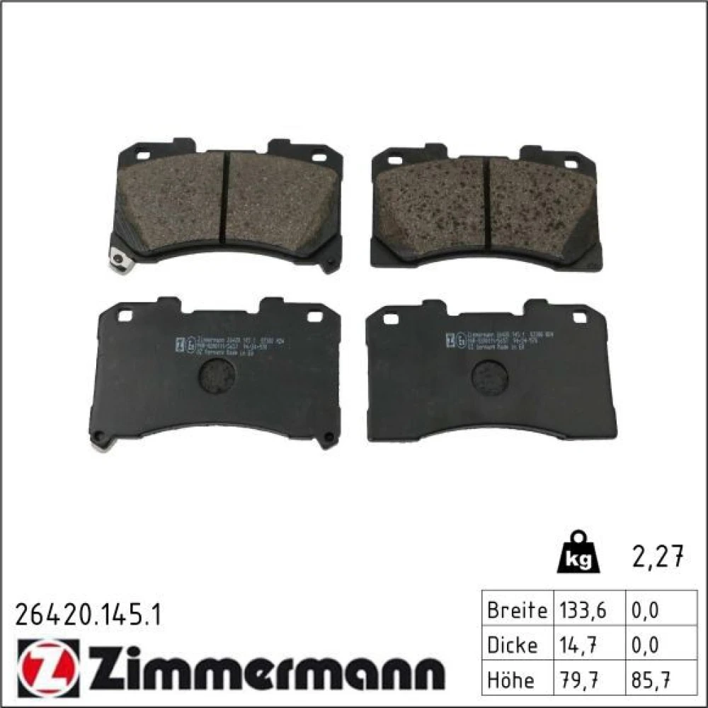 Zimmermann Bremsbelagsatz, Scheibenbremse 26420.145.1