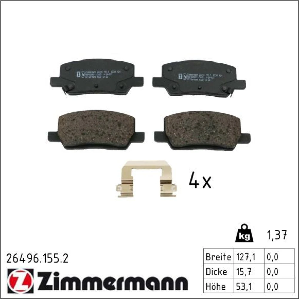 Zimmermann Bremsbelagsatz, Scheibenbremse 26496.155.2