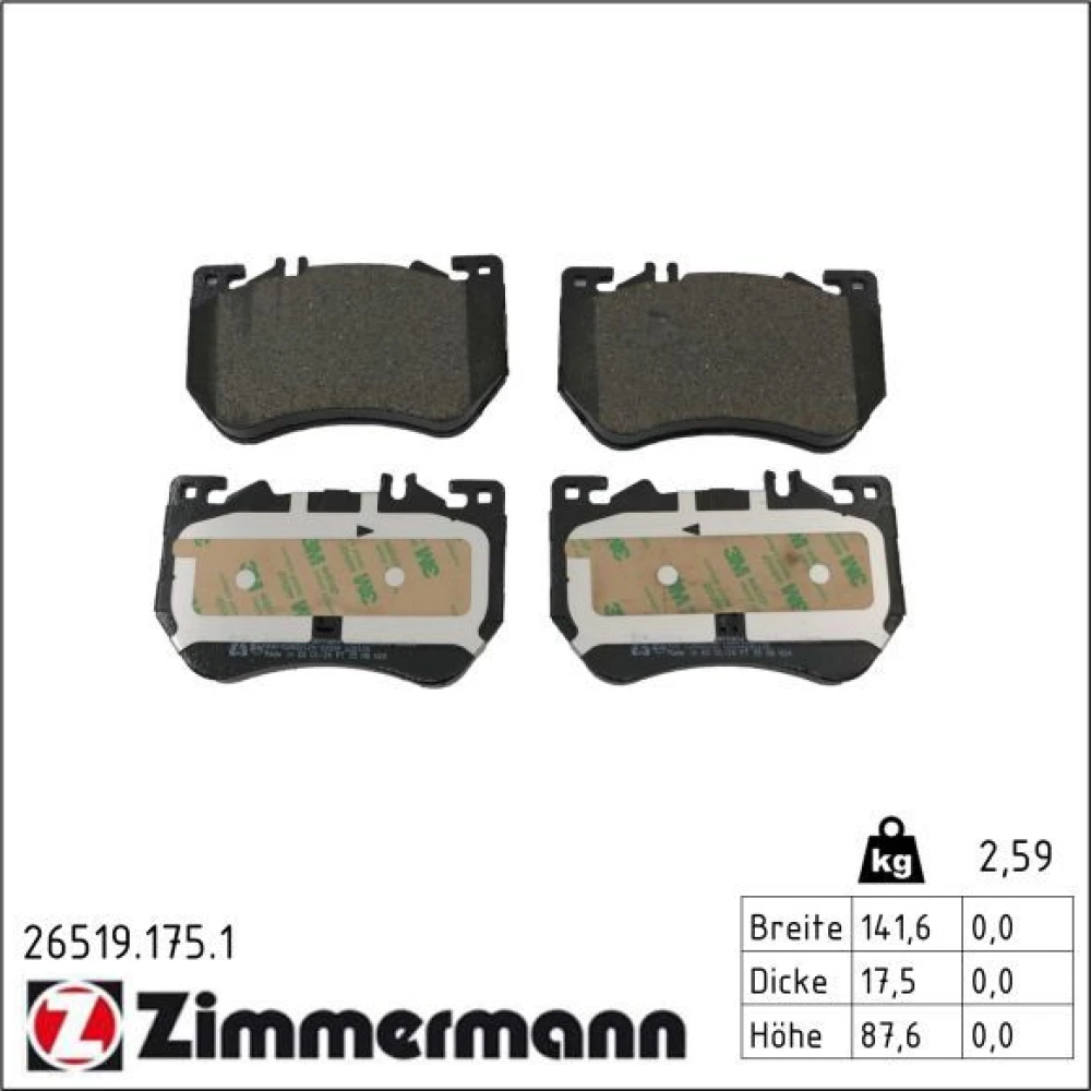 Zimmermann Bremsbelagsatz, Scheibenbremse 26519.175.1
