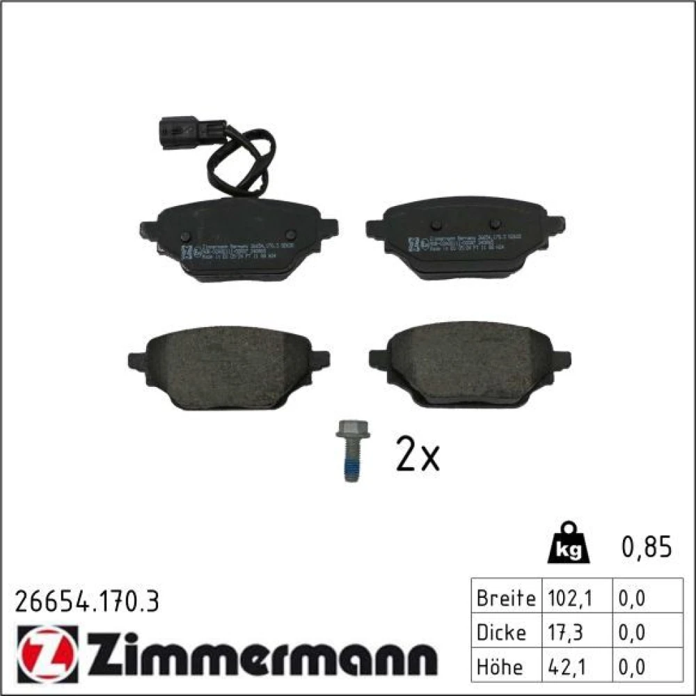 Zimmermann Bremsbelagsatz, Scheibenbremse 26654.170.3