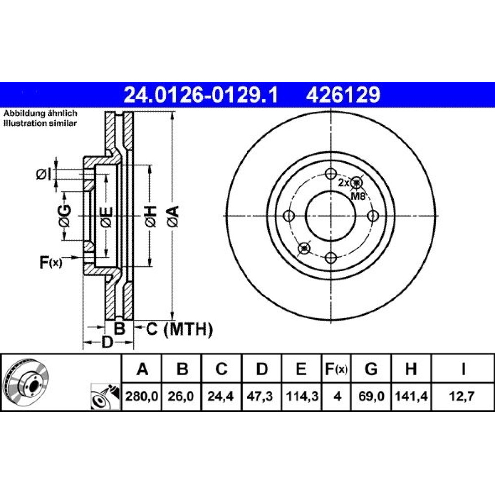 ATE | Bremsensatz, Scheibenbremse | 24.0126-0129.1 + 13.0460-5876.2 | 10865589