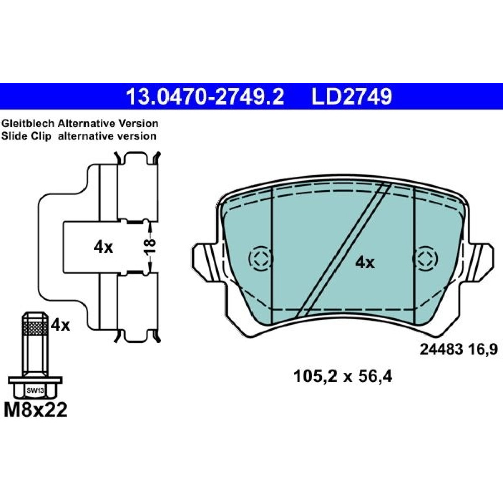 13.0460-0517.2 Zubehörsatz, Scheibenbremsbelag