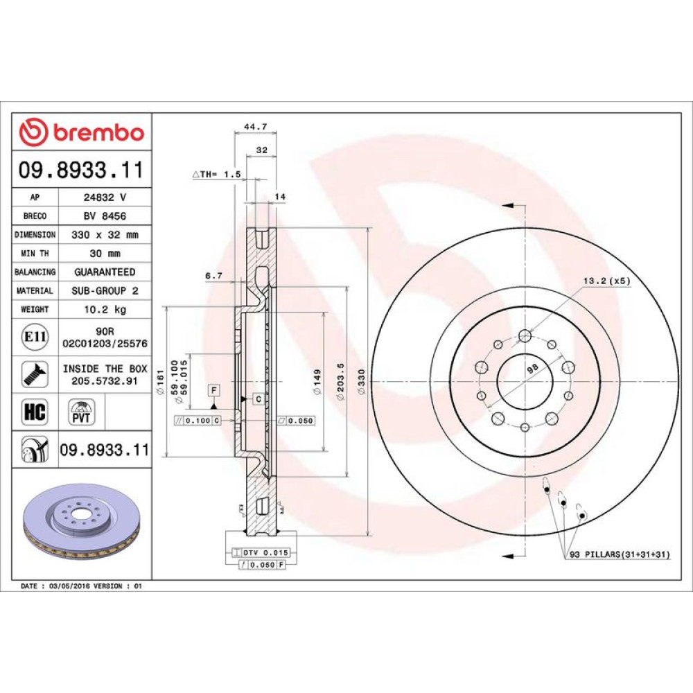 09.8933.11 Bremsscheibe PRIME LINE - UV Coated