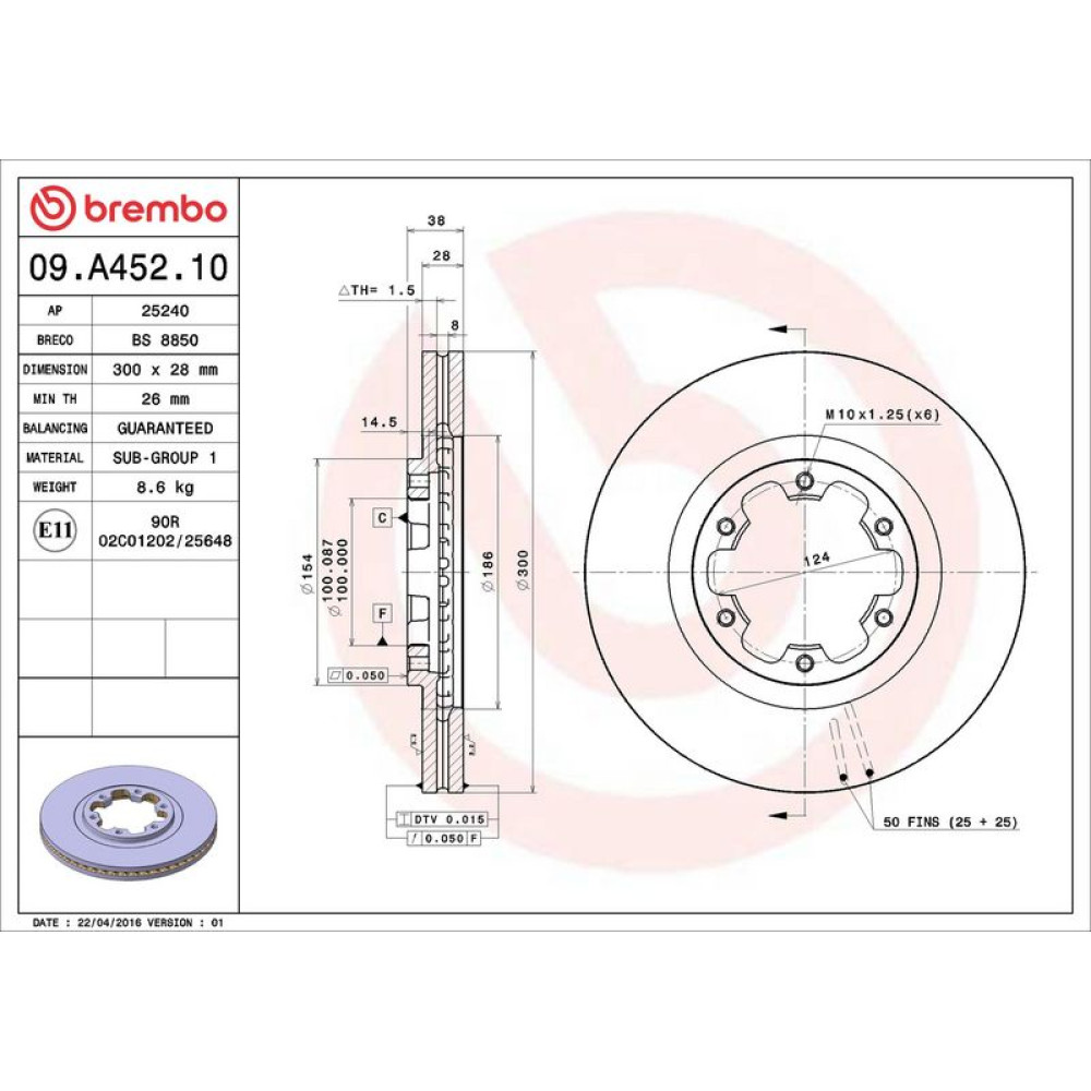 09.A452.10 Bremsscheibe PRIME LINE