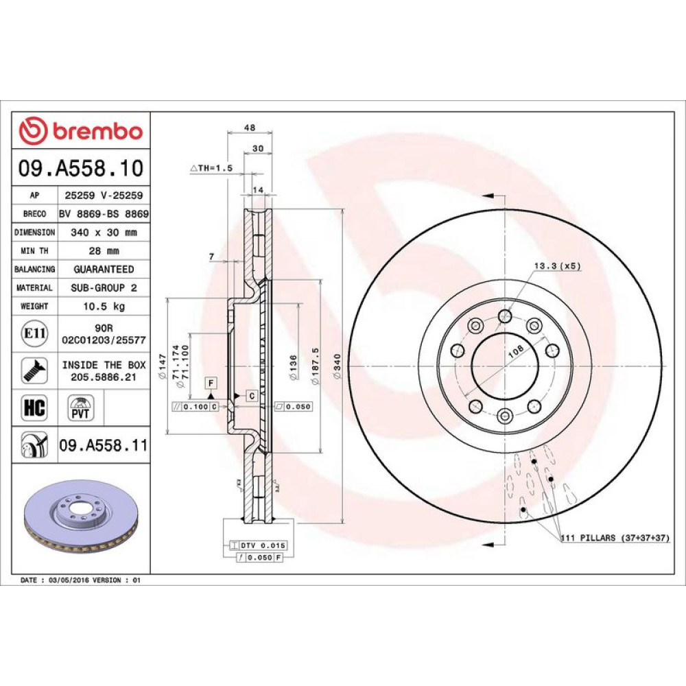 09.A558.11 Bremsscheibe PRIME LINE - UV Coated